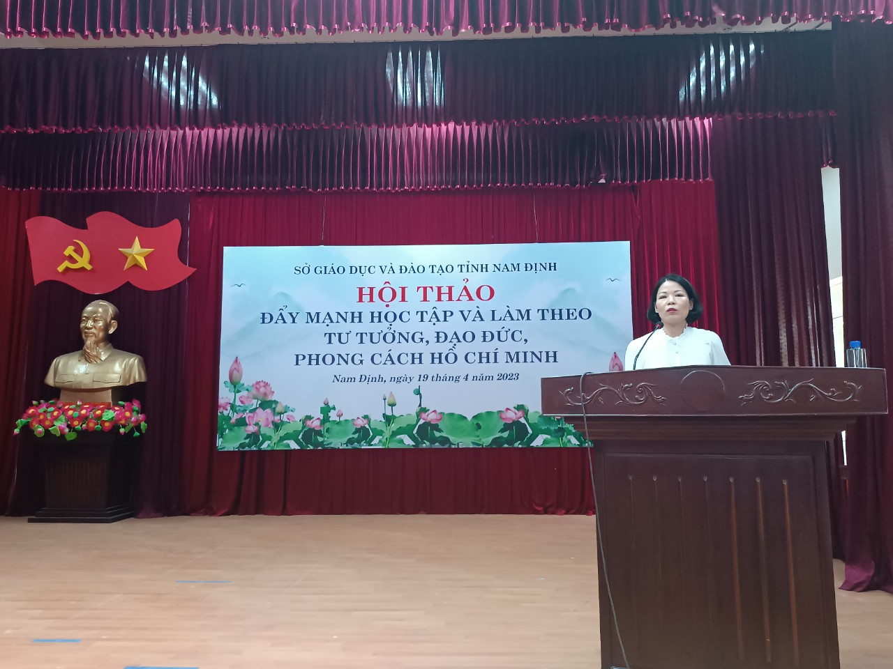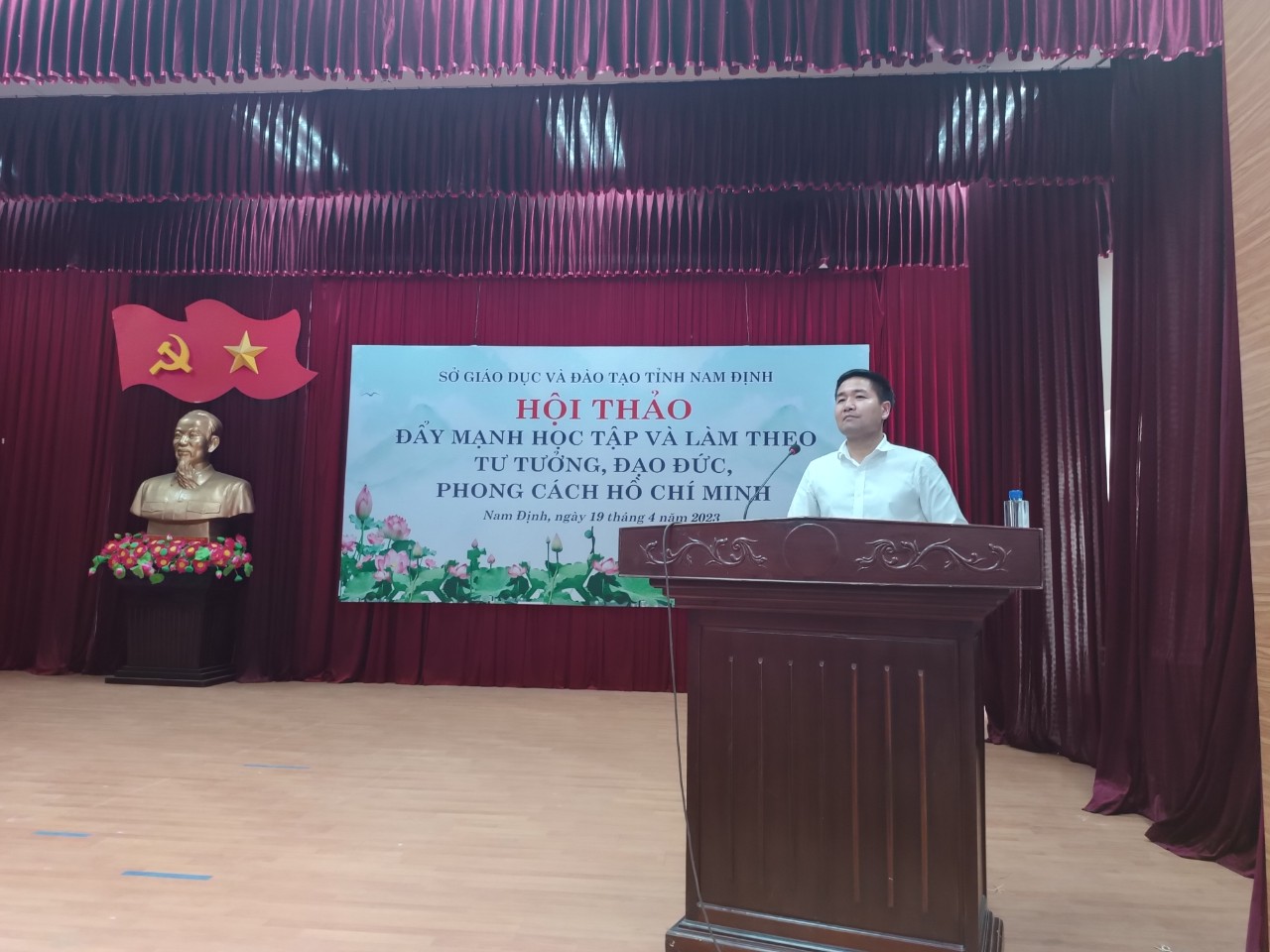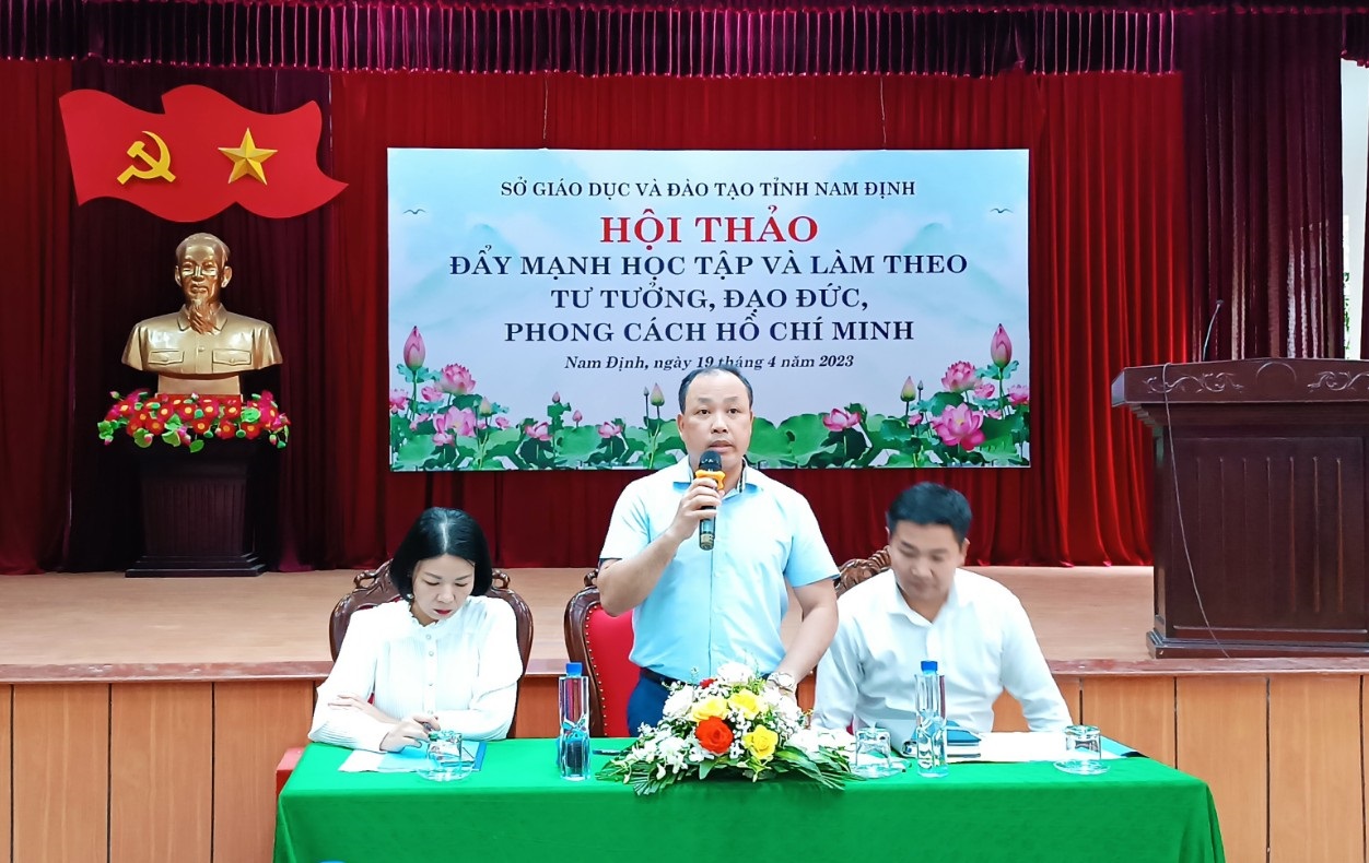 Sáng ngày 19/4, Sở GD&ĐT tỉnh Nam Định đã tổ chức Hội thảo “Đẩy mạnh học tập và làm theo tư tưởng, đạo đức, phong cách Hồ Chí Minh”. Đây là một trong những hoạt động thiết thực của ngành GD và ĐT tỉnh hướng tới kỷ niệm 133 năm Ngày sinh Chủ tịch Hồ Chí Minh (19/5/1890 - 19/5/2023), 60 năm Ngày Bác Hồ về thăm Nam Định (21/5/1963 - 21/5/2023).